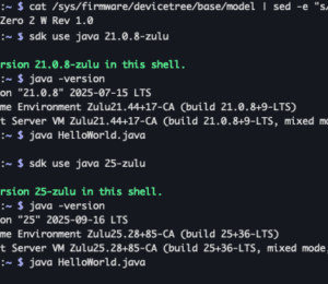 Table of Contents Reproducing The ProblemFixed with Latest OpenJDK 21 and 25Conclusion As described before on Java 21+ Not Working on Raspberry Pi Zero 2, a problem appeared to execute Java code on the Raspberry Pi Zero 2 with OpenJDK …