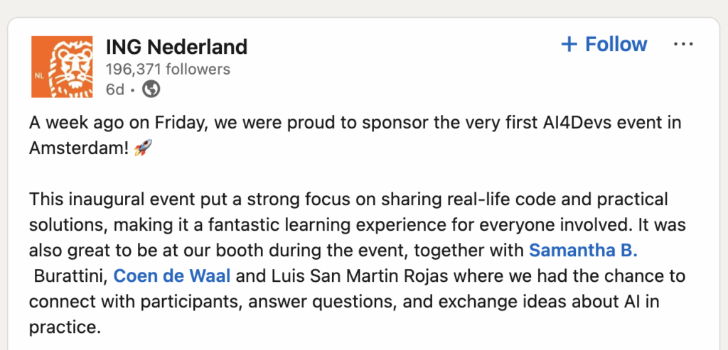 With its laser-focused, developer-centric approach and intimate setting, AI4Devs Amsterdam successfully established itself as a premier destination for practical AI knowledge.