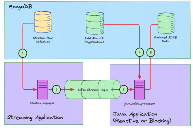 - It executes the MongoDB operations - enricher.enrich(msg), or writer.write(msg).thenReturn(msg) to get a Mono<AdsbMessage>