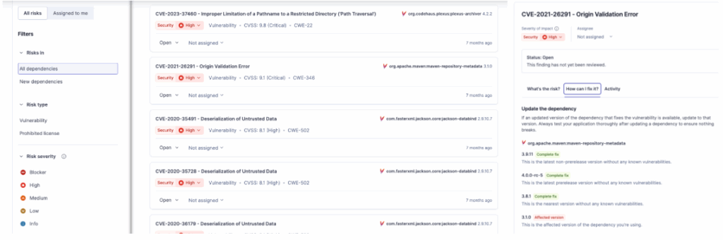 - SCA Analysis(Software Composition Analysis): This is non-negotiable. You must run an SCA scan (like SonarQube Advanced Security) against the server's code. This will generate a report and tell you every known CVE it's vulnerable to and the fix (version change) suggested.