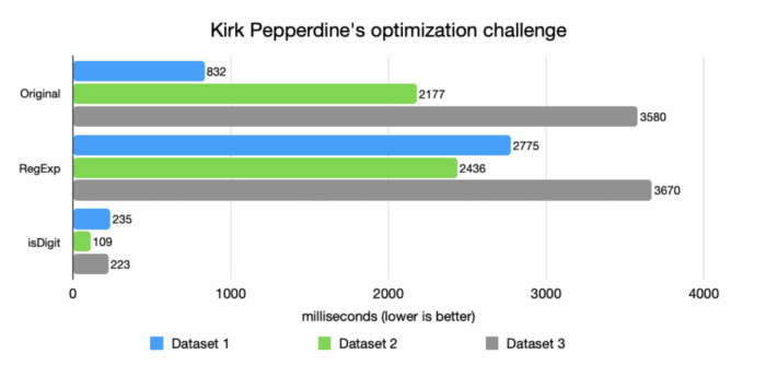 This version delivered 10× to 50× better performance than the original — nearly matching Kirk’s own unrolled switch-case variant (labeled as Best on a chart below).