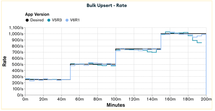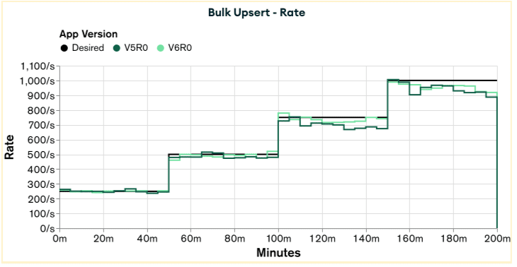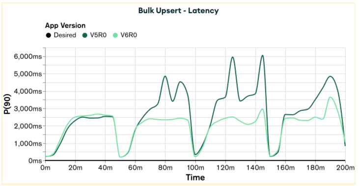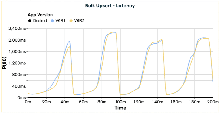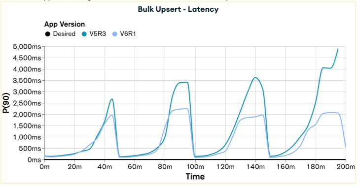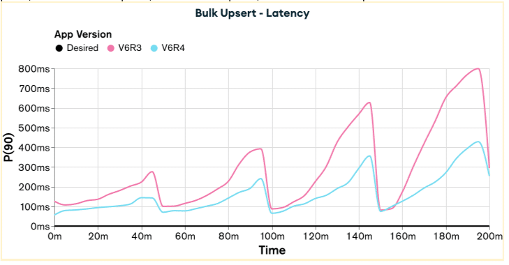 - Bulk Upsert latency: From 62 seconds (appV1) to 250-800ms (appV6R4)—a 99% improvement