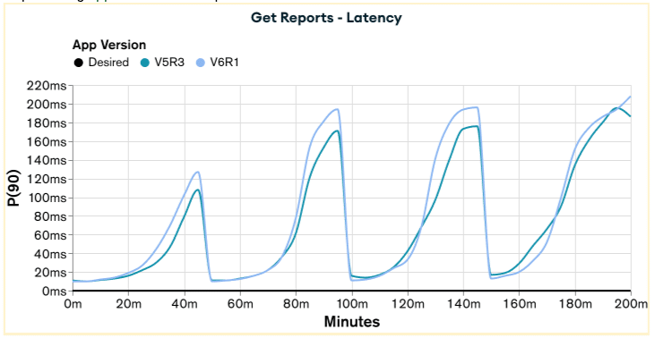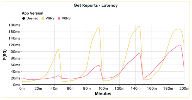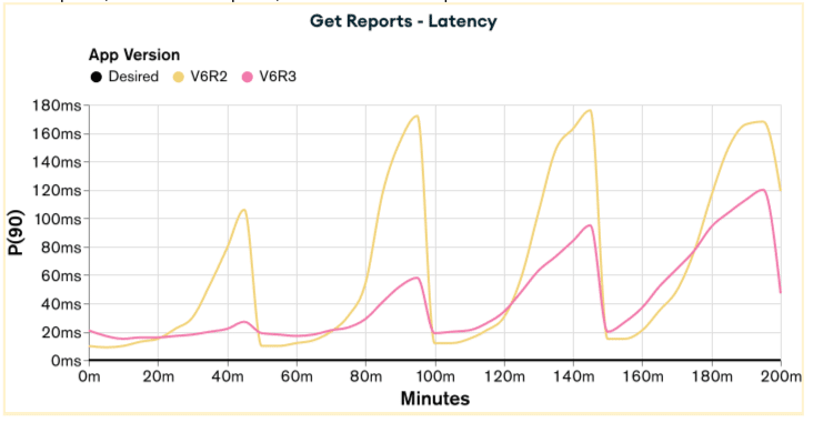 - Get Reports latency: From 6.5 seconds (appV1) to 200-800ms (appV6R4)—a 92% improvement